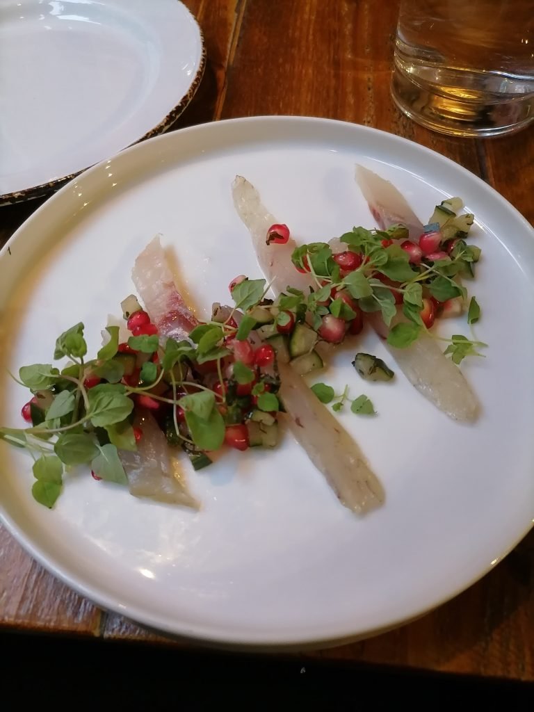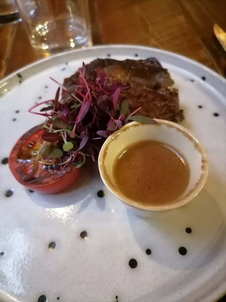 We had dinner in the hotel and drinks. The Caxton Grill is a place steeped in the atmosphere. The food is top class and they cater well for everyone including vegetarians or vegans. The cured sea bass was full of flavour and I followed this with the rib eye steak. My vegan colleague had the pea and shallot ravioli , which was a delight and had subtly mixed flavours.